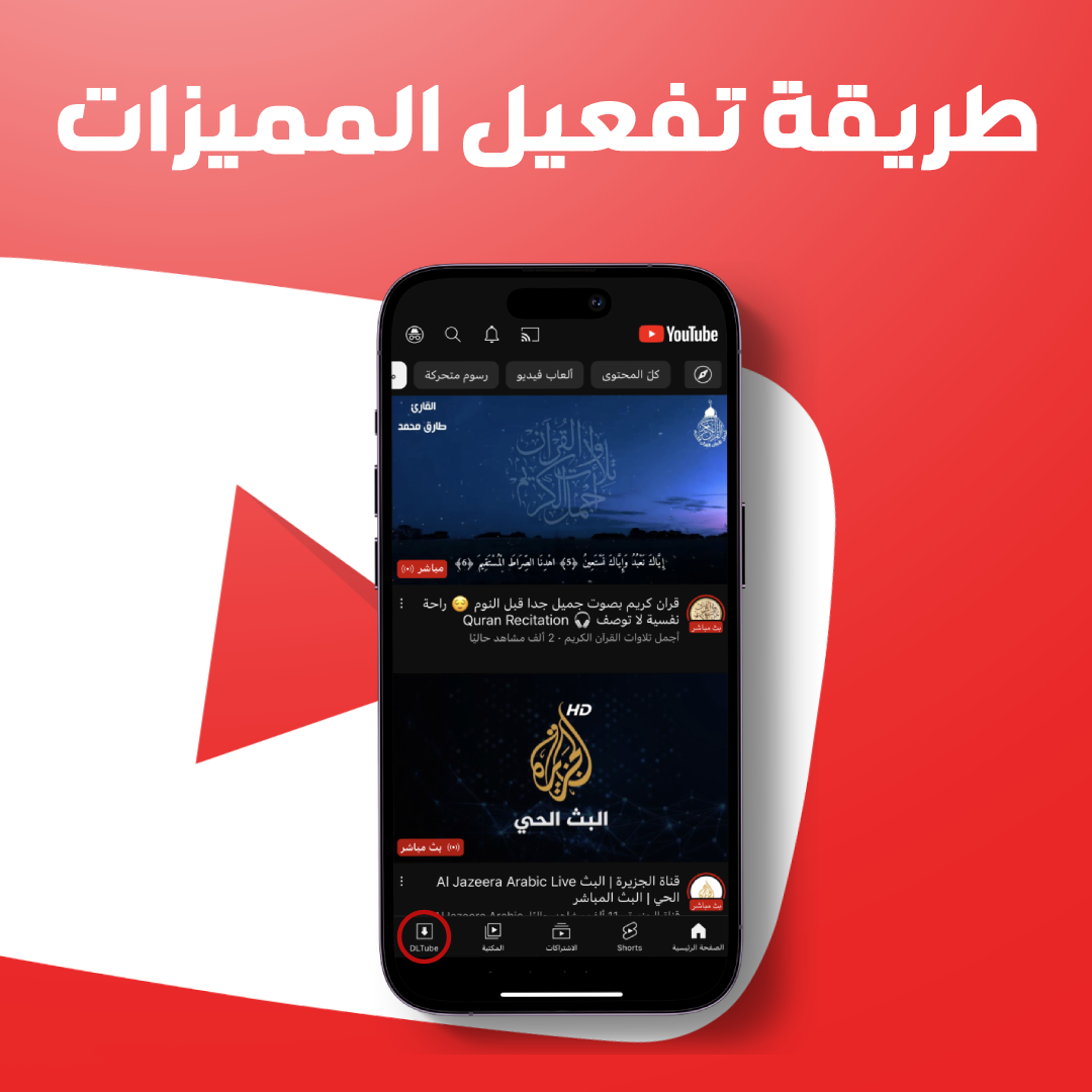 - خيارين للتنزيل ( الضغط المطوّل - زر DLTube ) .